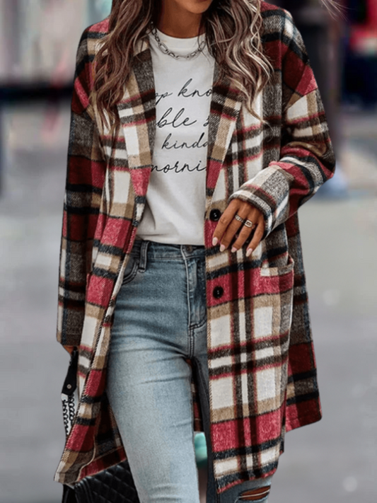 Chic mjuk bekväm rutig jacka kappa för kvinnor