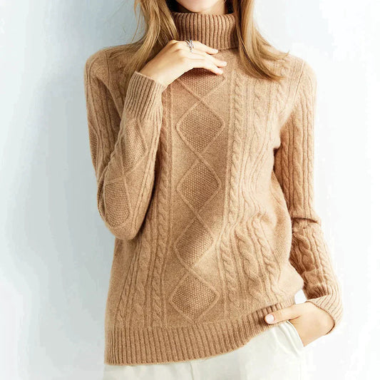 Chic stickad kashmirtröja med polokrage för kvinnor