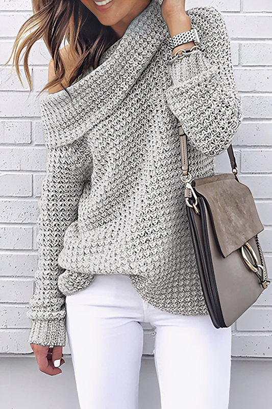Fashionabel stickad polokrage vintertröja för kvinnor