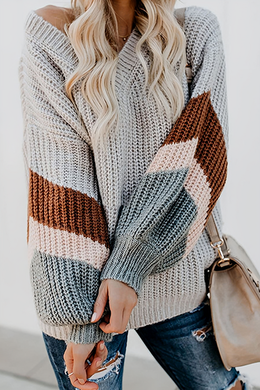 Trendig v-ringad tröja med snygga ärmar för kvinnor