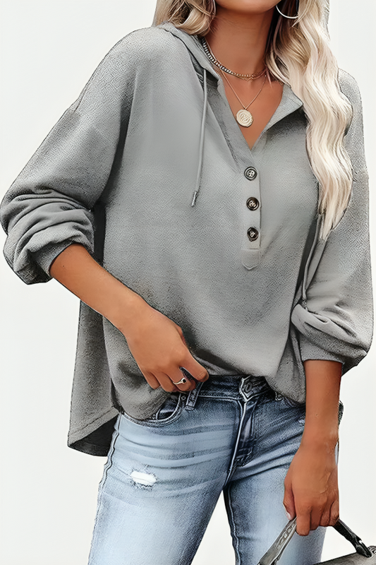 Avslappnad tröja med dragsko och huva för kvinnor
