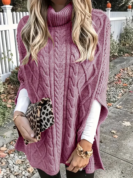 Snygg stickad polokrage varm vintertröja för kvinnor