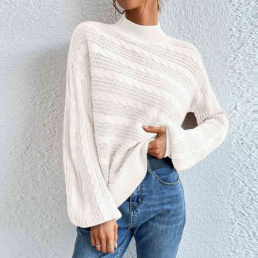 Löst sittande elegant stickad polokrage tröja för kvinnor