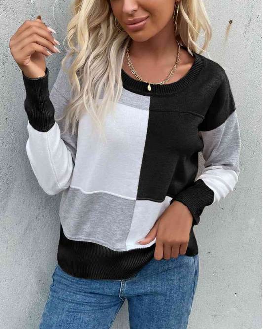 Chic stickad rundhalsad figursydd tröja för kvinnor