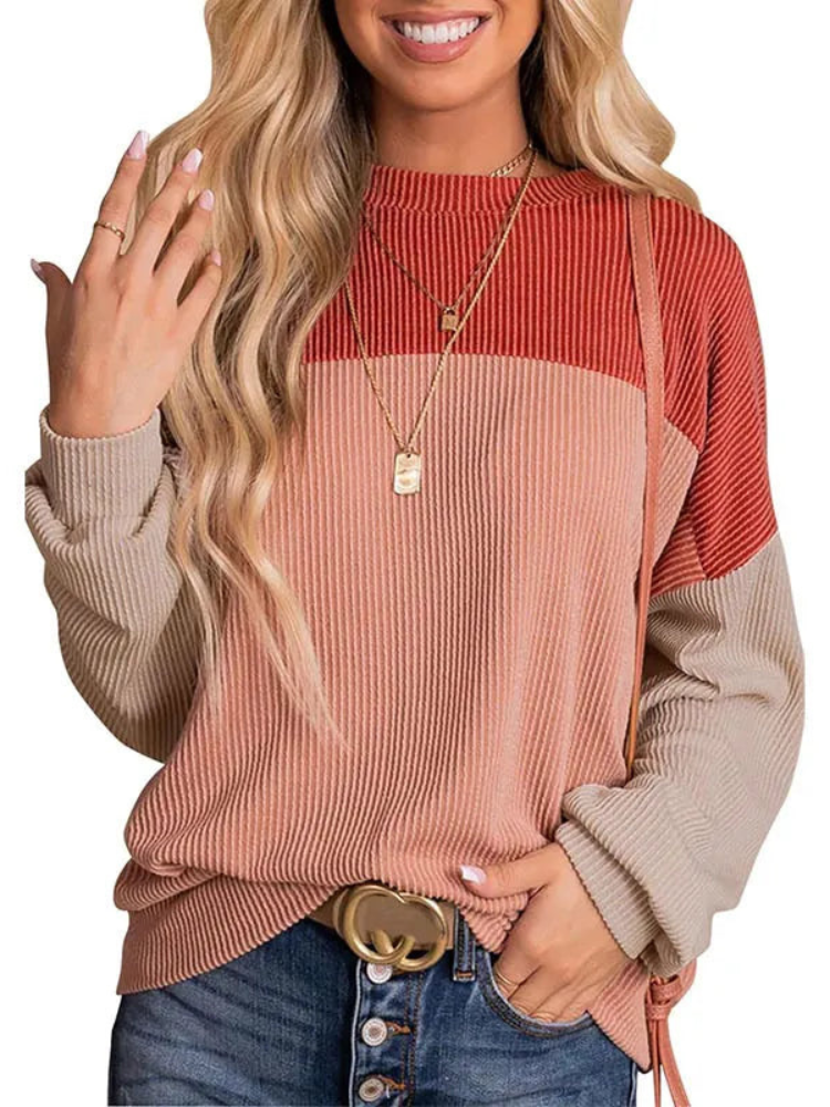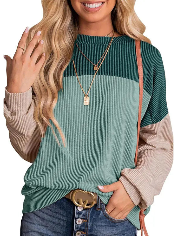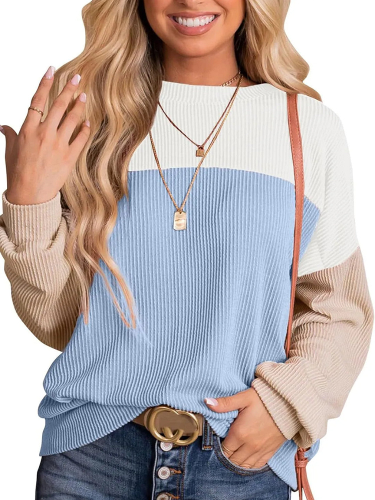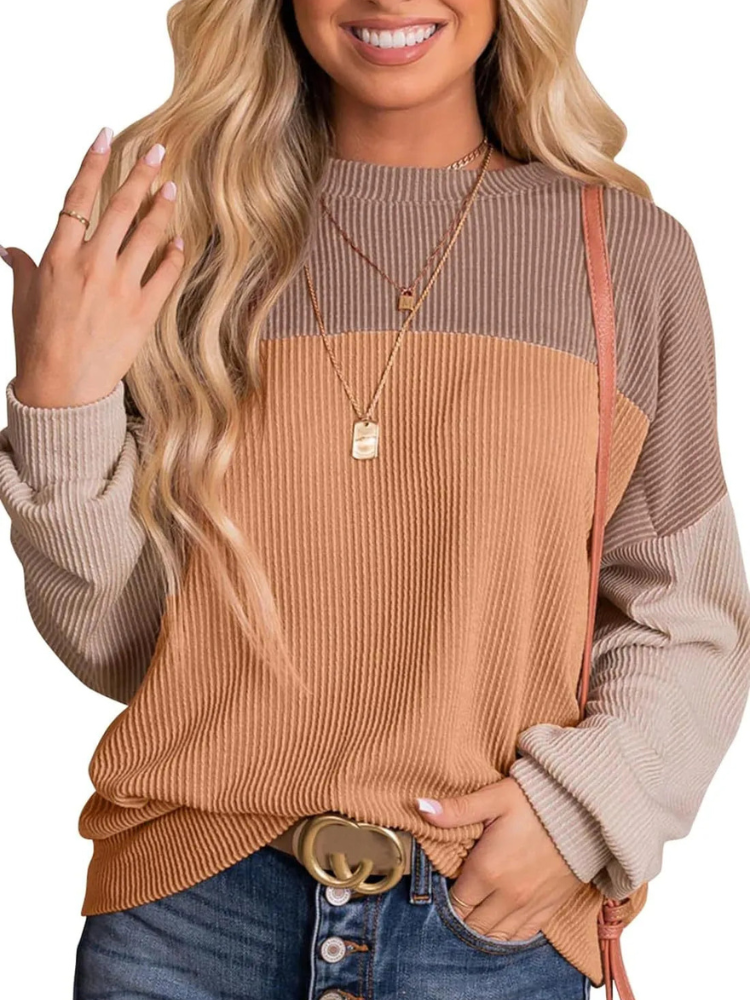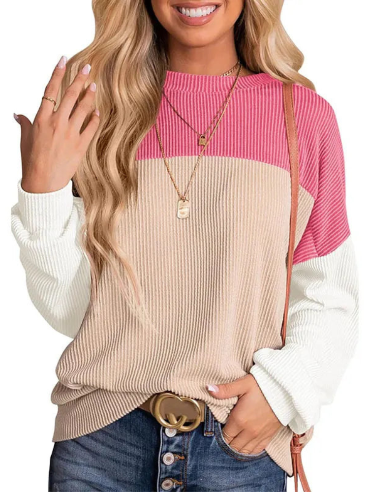 Avslappnad stickad tröja med rund hals...
