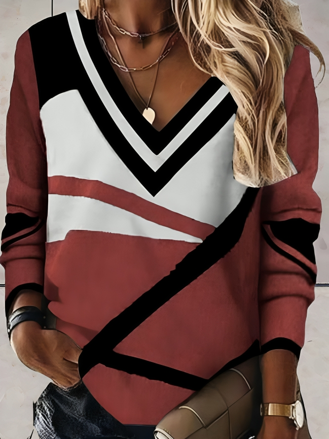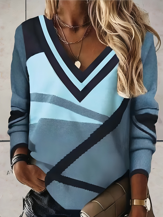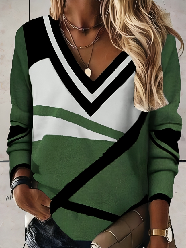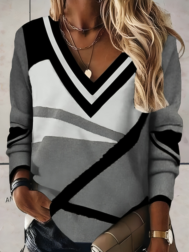 Geometrisk v-ringad tröja för kvinnor