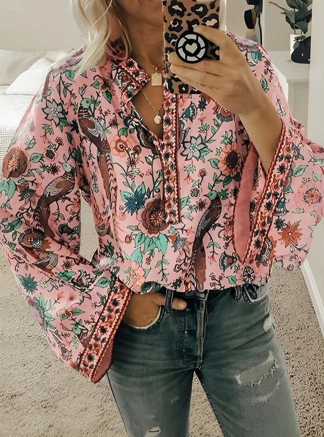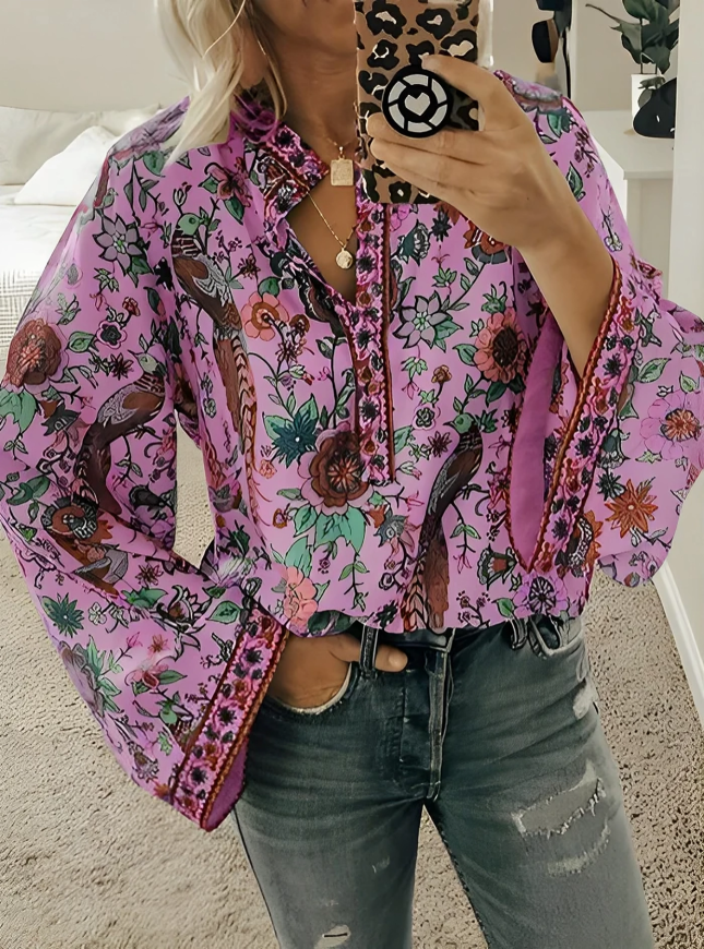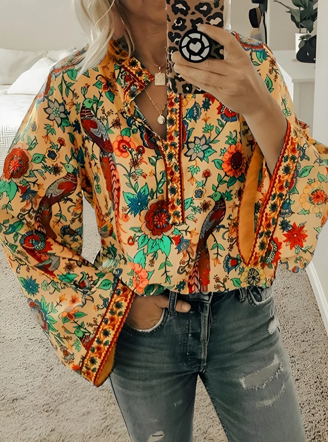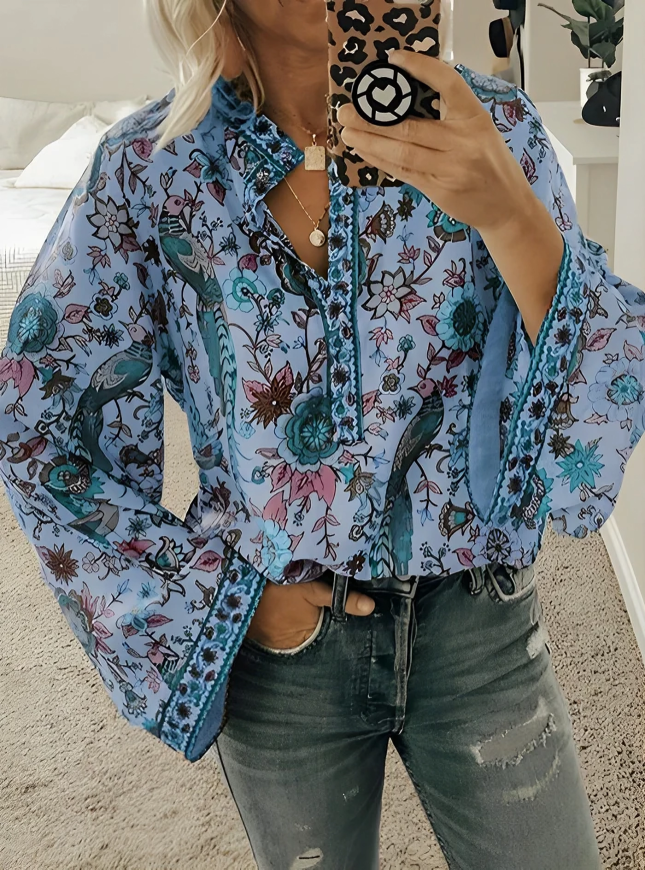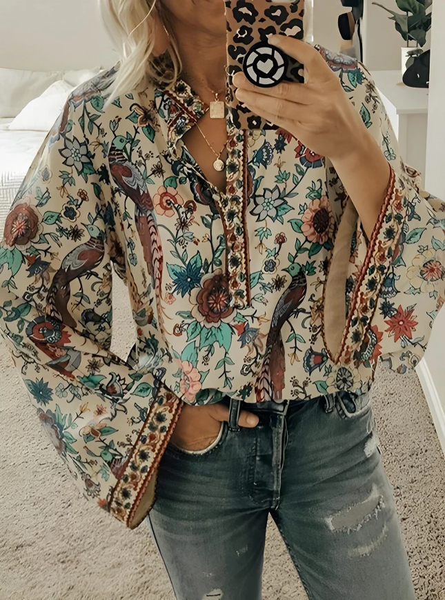 Lösa bohemiska blommiga flare långärmad blus...
