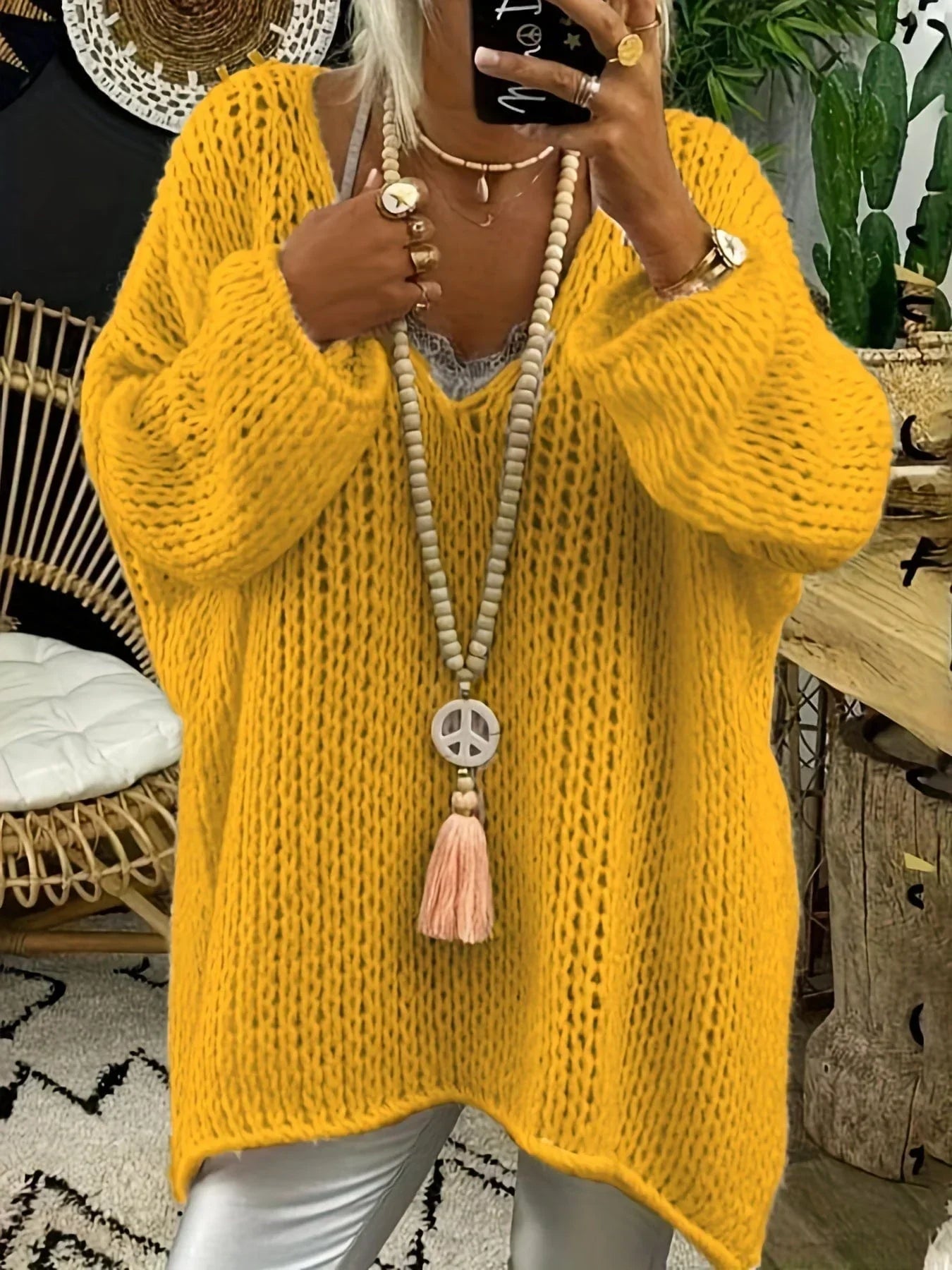 Löst stickad bekväm tröja för kvinnor
