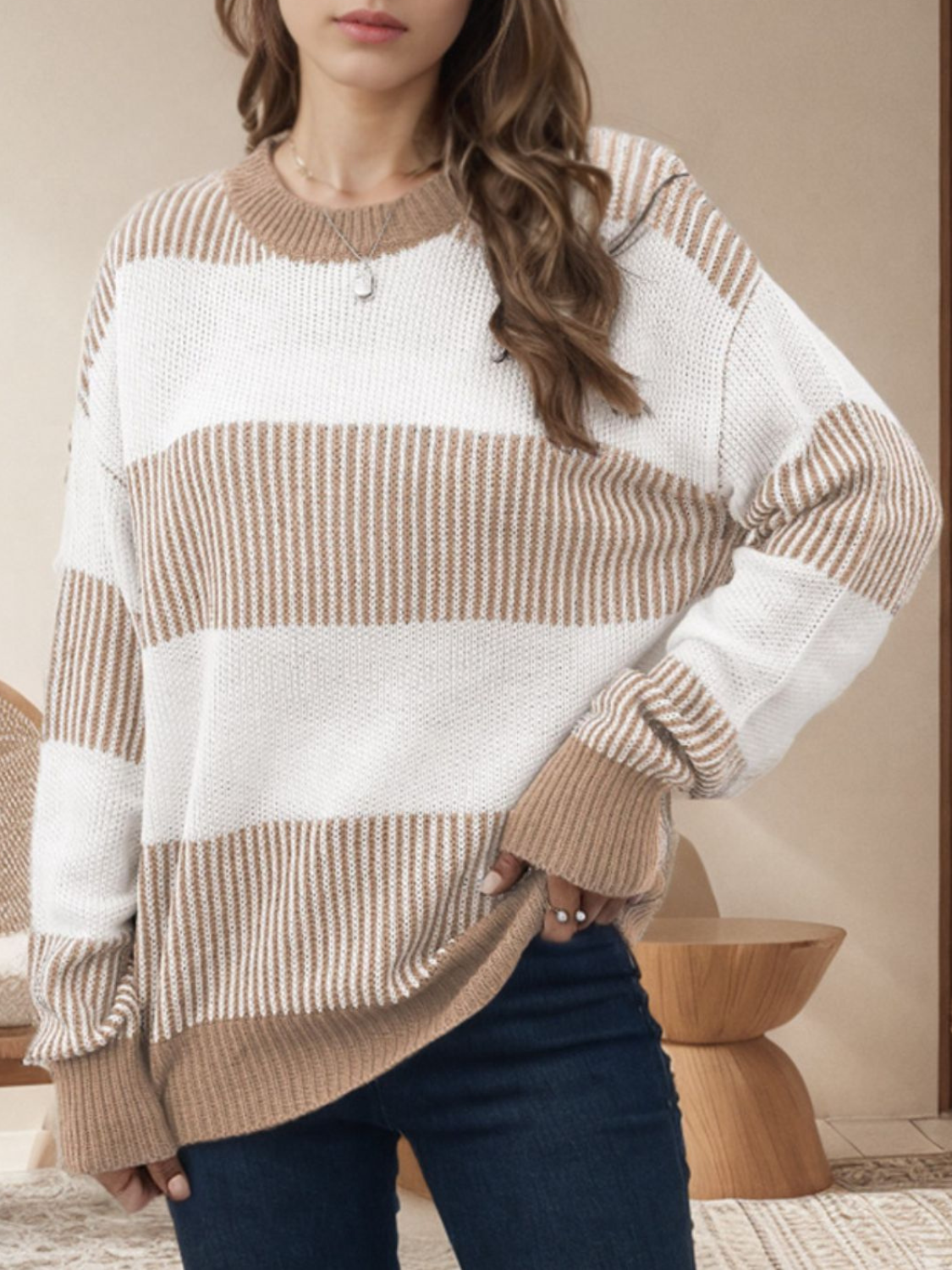 Mysig randig rundhalsad långärmad tröja för...