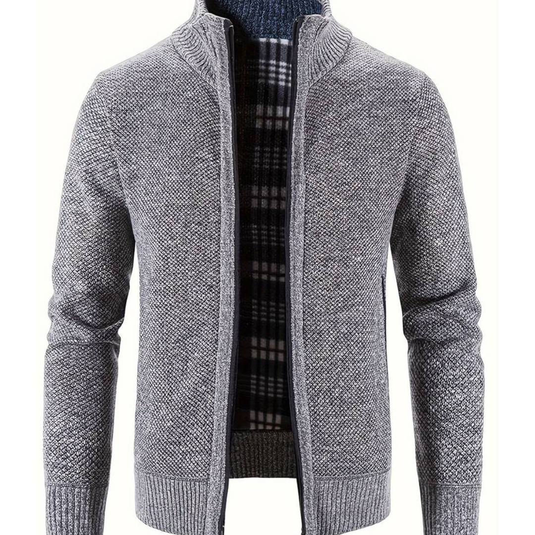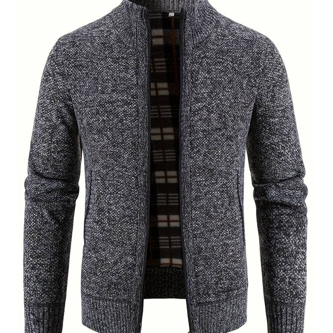 Polokrage stickad kofta jacka för män