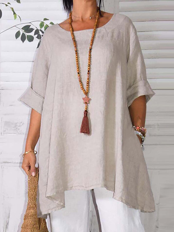 Rundhalsad oversize blus med asymmetrisk fåll...